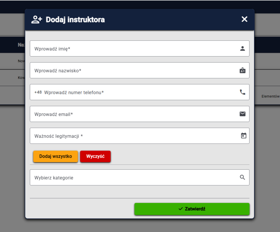 Pełne wykorzystanie czasu Instruktorów – system pomaga znaleźć i uzupełnić luki w grafiku, podpowiadając dostępnych kursantów i instruktorów.