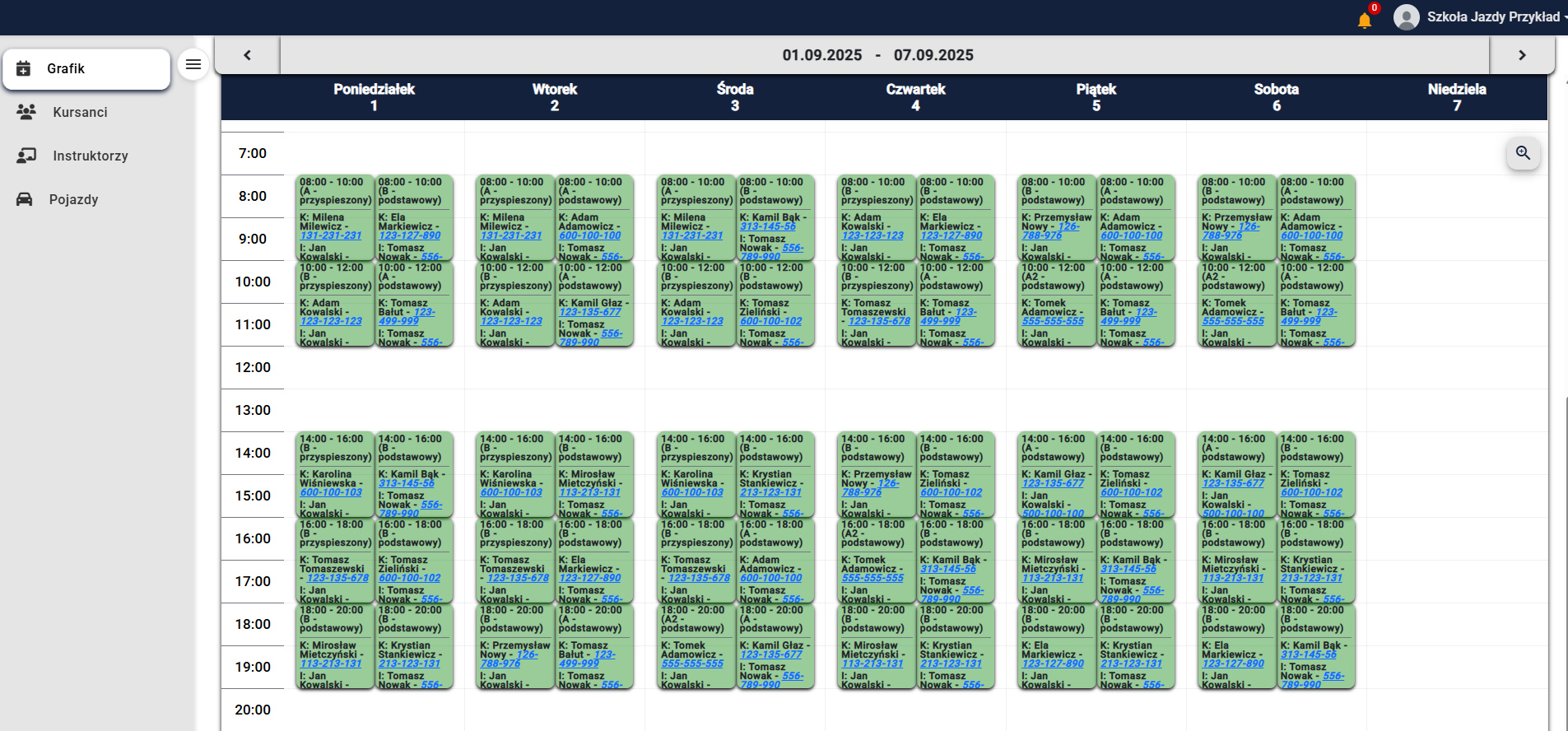 Sprawiedliwy i dopasowany grafik – równomierny rozdział jazd, kontrola liczby lekcji dziennie.